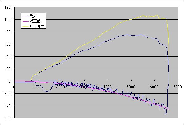 まあグラフとしては結構きれいに取れているので満足です.5500rpmで最大馬力とか,カタログどおりですね.絶対的な数値の信頼度は?ですが,なんかパーツを変えたときの馬力変化などは十分計測できそうです.